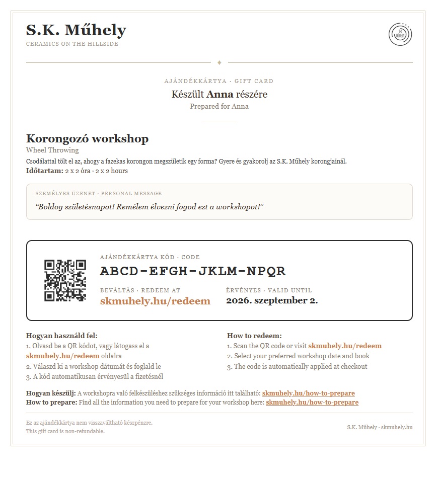 This is what your generated gift card PDF will look like.